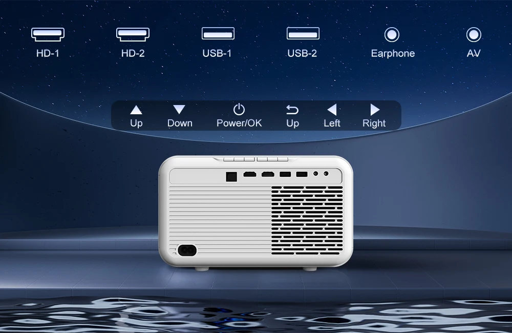 Despite its compact size, the D9W impresses with a true 2500 ANSI lumens brightness, delivering crisp and vibrant images even in moderately lit environments. With native 1080P resolution and 4K playback support, you can enjoy large-screen projections filled with detail and rich colour.